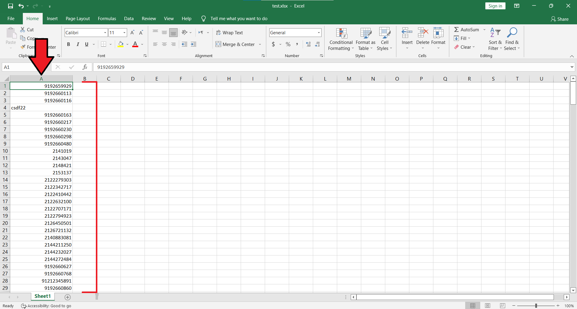ابتدا فایل اکسلی که لیست شماره موبایل های مورد نظر شما در آن قرار دارند را باز میکنیم . احتمالا در این فایل مورد نظر شماره موبایل هایی وجود دارند که دارای خرابی و ایراد باشند . این ایراد ها و خرابی ها میتواند شامل کم یا زیاد بودن تعداد ارقام ، ترکیب شدن حروف با اعداد و ... باشند .