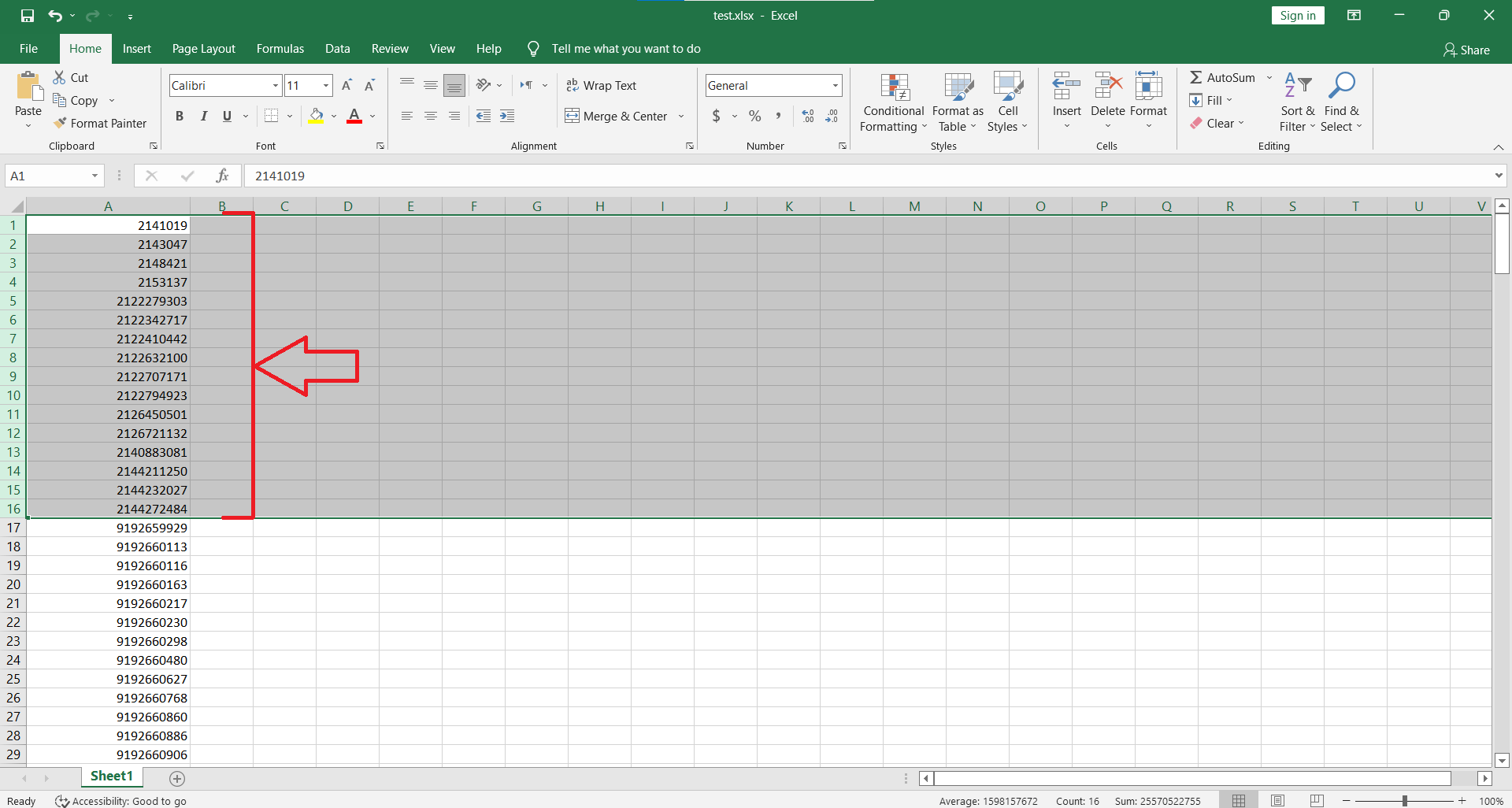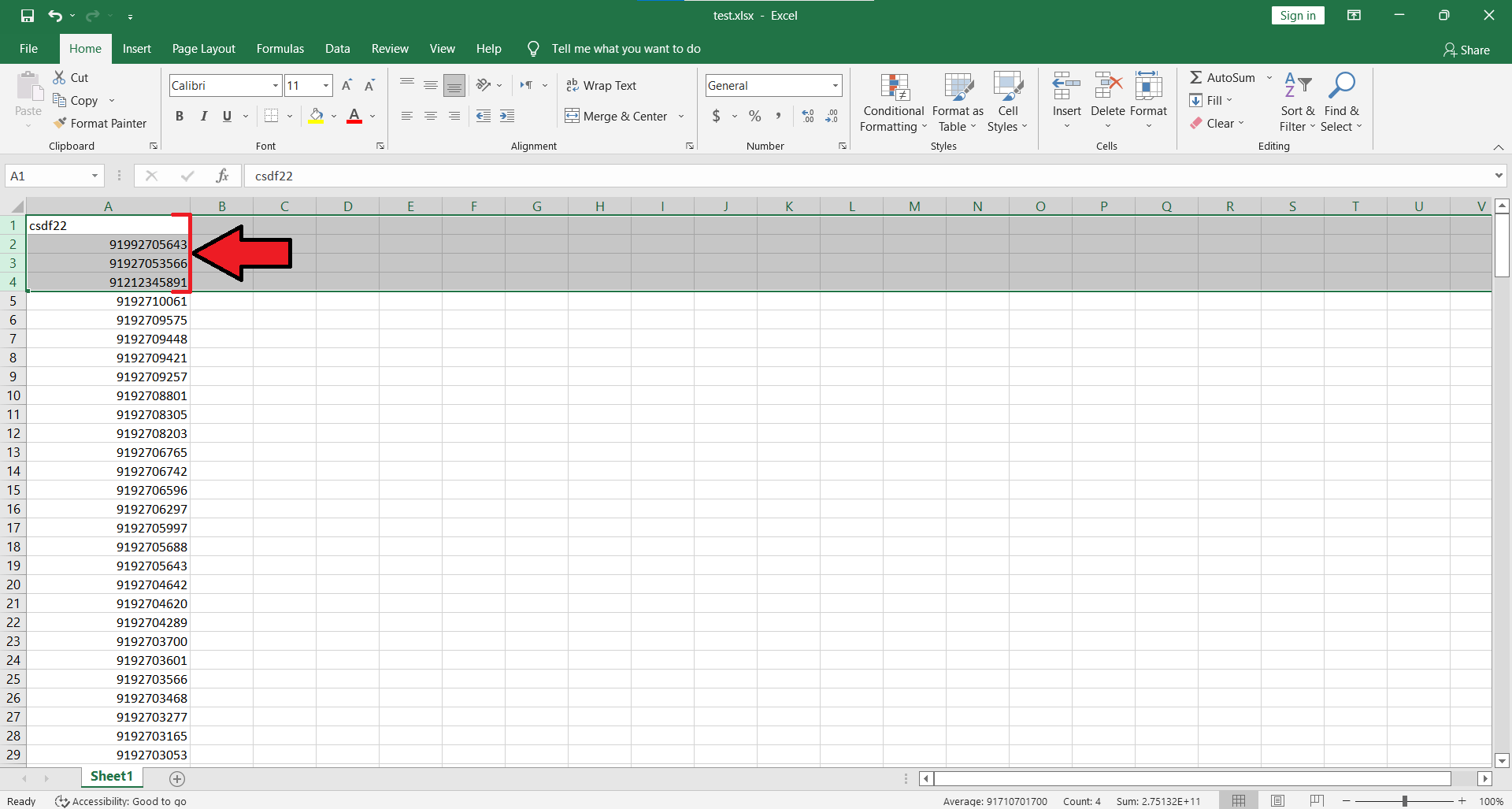 برای اینکار ، از بالای لیست و ستون شماره ها ، اولین شماره که ایراد دارد را با یک کلیک انتخاب کرده و به پایین آمده و بر روی آخرین شماره ی ایراد دار در حالی که دکمه Shift کیبورد را نگه داشته اید ، کلیک می کنید تا کل آن شماره های خراب انتخاب شوند. مانند عکس و مثال بالا :