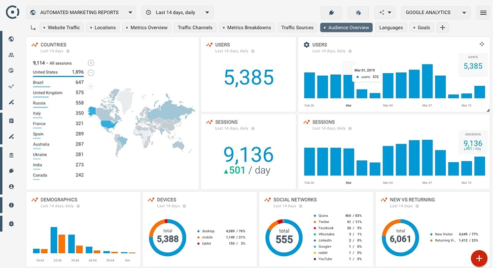 یکی از مهمترین و پراستفادهترین ابزارهای دیجیتال مارکتینگ، گوگل آنالیتیکس است. کمی غیرقابل باور به نظر میرسد ولی گوگل آنالیتیکس مجموعهی بسیار زیادی از گزارشها را به صورت کاملا رایگان در اختیار شما قرار میدهد. شما میتوانید رفتار مخاطبان وبسایتتان را به خوبی دنبال و تحلیل کنید. گوگل آنالیتیکس به شما نشان میدهد هر یک از مخاطبان سایتتان از چه طریقی وارد وبسایت شدهاند و چگونه مسیر فانل فروش خود را طی کردهاند. البته آنقدر گزارشهایی که گوگل آنالیتیکس در اختیار شما قرار میدهد، زیاد است که توضیح جزییات آن در این مطلب نمیگنجد ولی برای اطلاعات بیشتر میتوانید چگونه از گوگل آنالیتیکس استفاده کنیم را مطالعه میکنید.