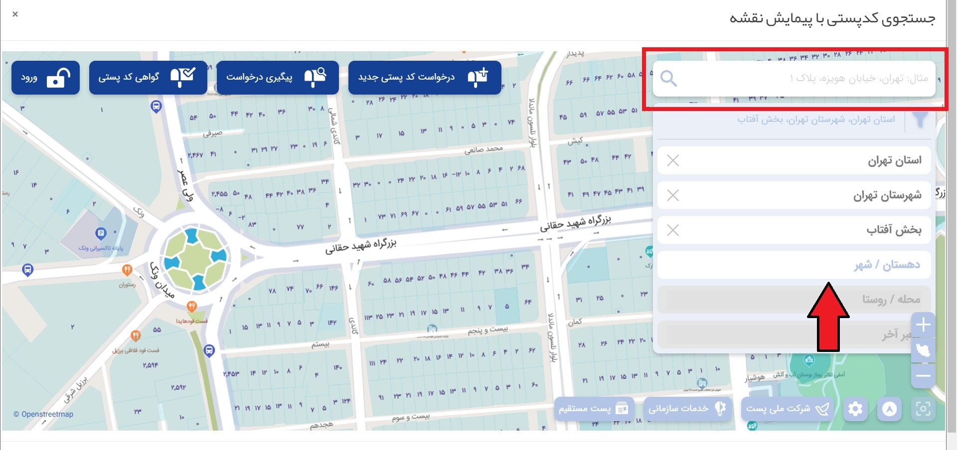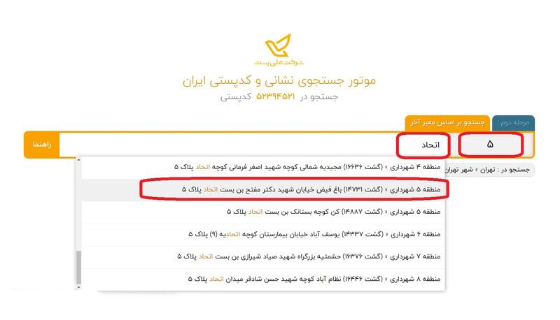 - پیدا کردن کد پستی از طریق آدرس و نشانی
