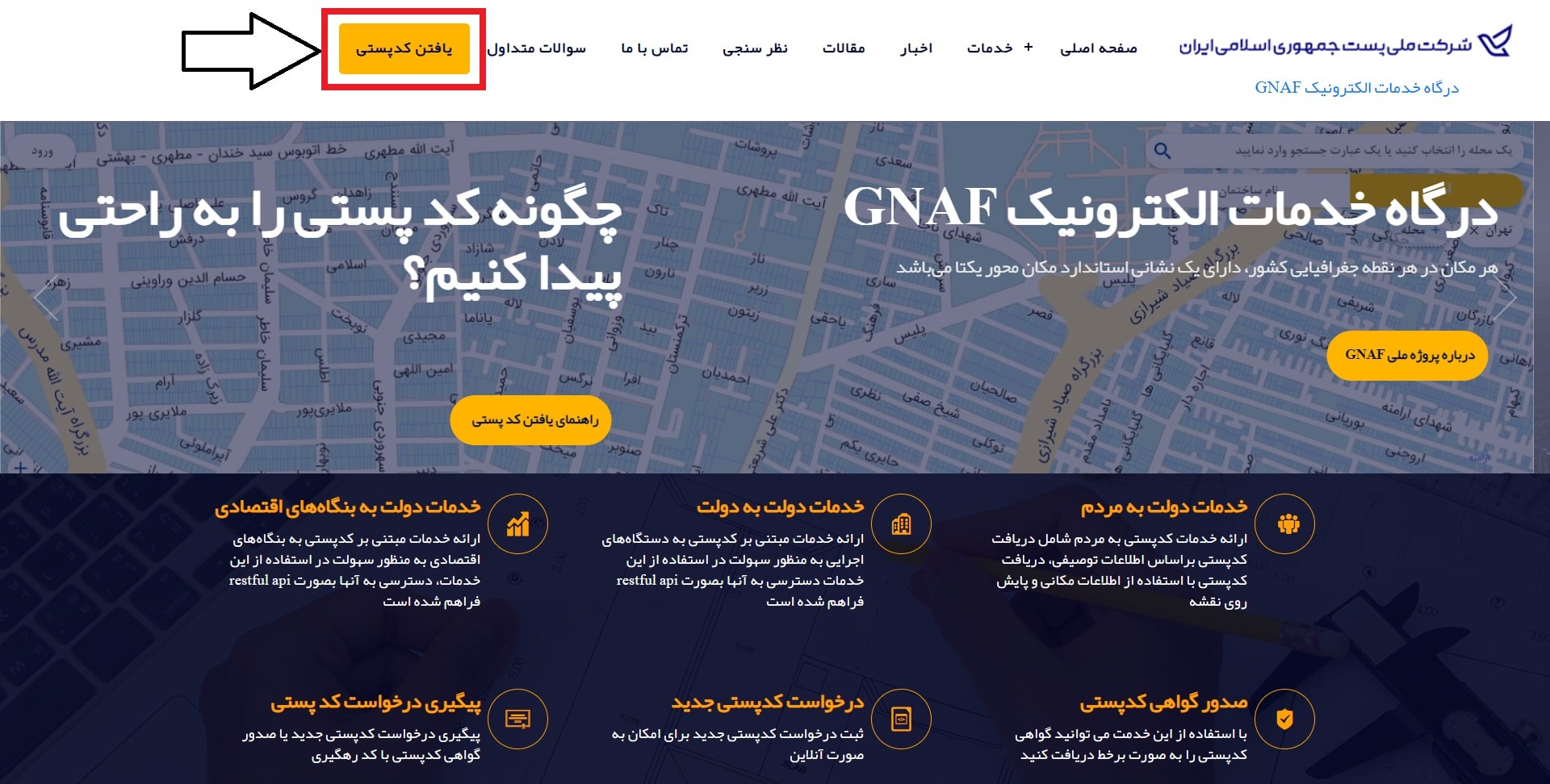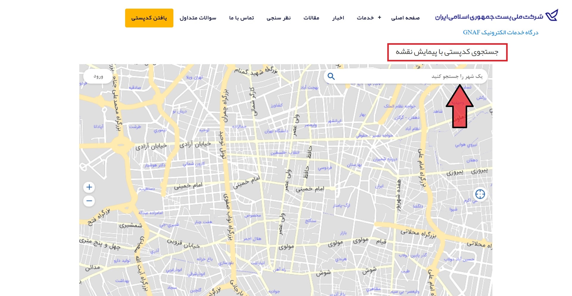 پیدا کردن کد پستی از روی نقشه