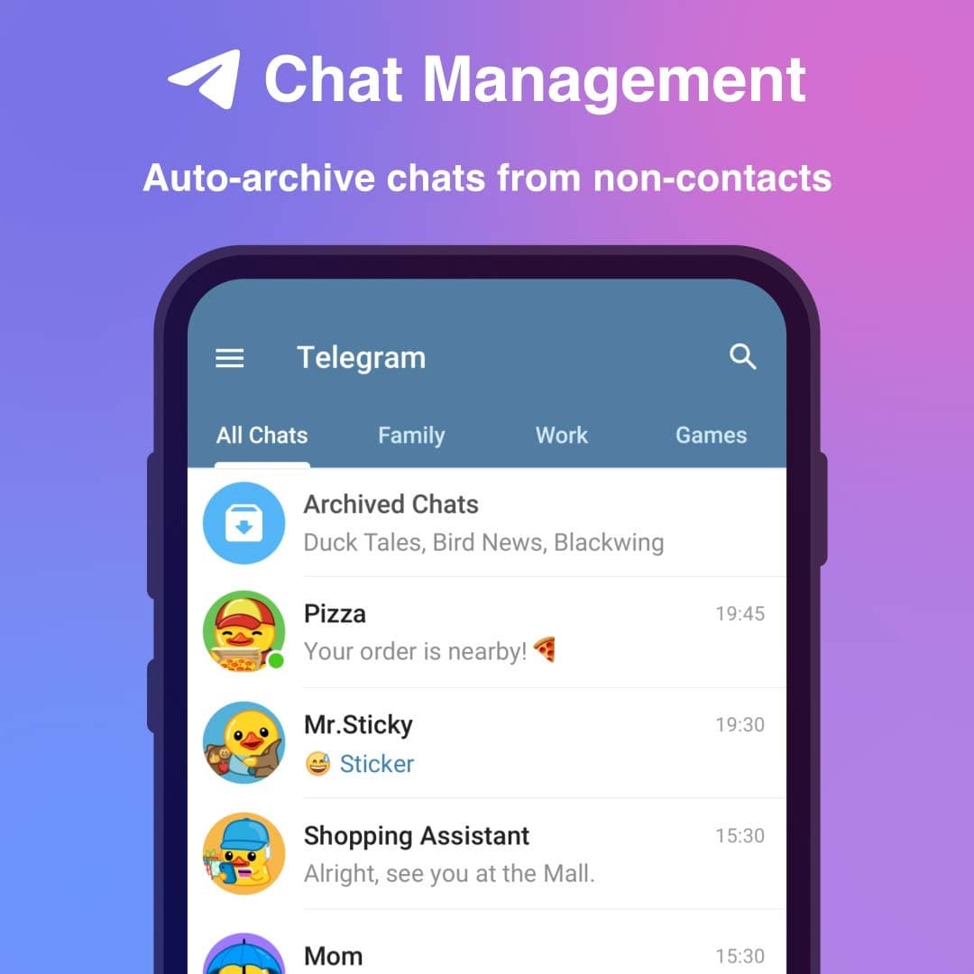 قابلیت مدیریت حرفه ای پیام ها و چت ها برای بهتر پاسخ دادن به آن ها، در نسخه تلگرام پرمیوم پیشرفت چشمگیری داشته است. استفاده کنندگان تلگرام پرمیوم میتوانند لیست چت های خود را در فولدر های دلخواه و به ترتیب اولویت مد نظرشان قرار دهند و از این طریق از مشاهده پیام های نا مربوط جلوگیری میشود. از دیگر ویژگی های این قسمت، امکان آرشیو کردن گروه ها، کانال ها و چت های بیشتر برای جلوگیری از شلوغی صفحه تلگرام شما است.