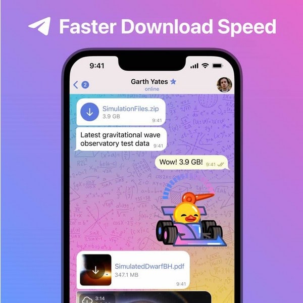 سرعت دانلود و آپلود فایل ها در نسخه پولی تلگرام، از نسخه عادی آن بیشتر است. شرکت تلگرام با توجه به پهنای باند منطقه جغرافیایی شما، بیشترین سرعت دانلود ممکن را برای تلگرام پرمیوم اختصاص داده است و شما میتوانید فایل ها را در مدت زمان بسیار کمتری دانلود کنید.