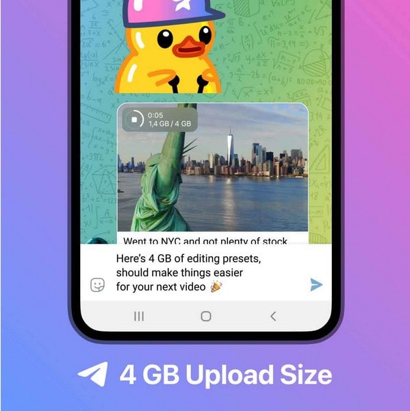 - کاهش محدودیت مربوط به حجم فایل ارسالی در تلگرام، که از 2 گیگابایت به 4 گیگابایت افزایش پیدا کرده است.