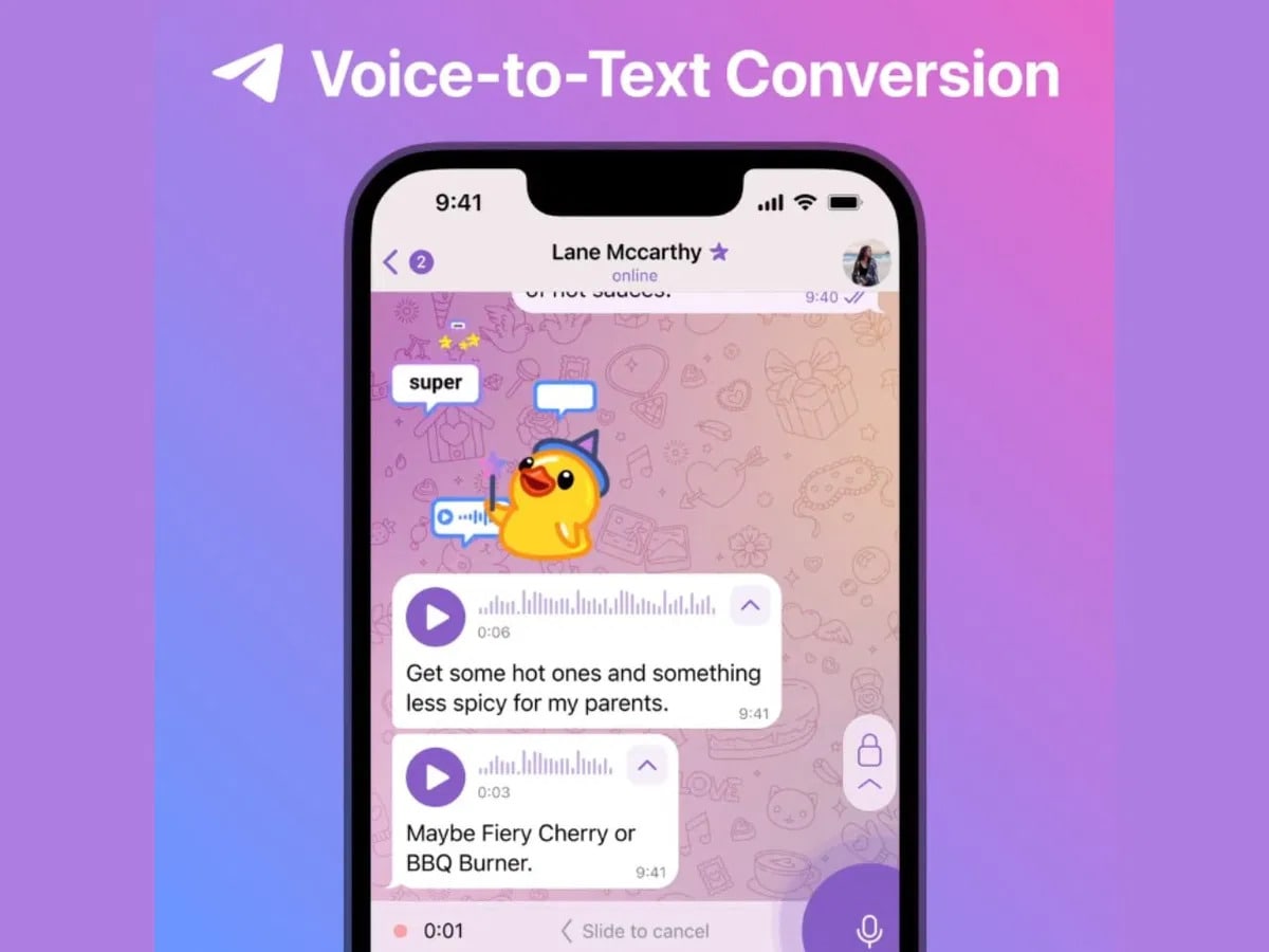 هنگامی که در محیط های شلوغ و پر سر و صدا هستید یا در شرایطی قرار دارید که امکان گوش دادن به ویس را ندارید، قابلیت تبدیل صوت به متن در تلگرام پرمیوم برای شما کاربر دارد. نسخه پرمیوم تلگرام این قابلیت ویژه را دارد که ویس و گفتار شما را در لحظه تایپ کرده و تبدیل به یک پیام متنی بکند تا بتوانید پیام خود را به صورت متن ارسال کنید.