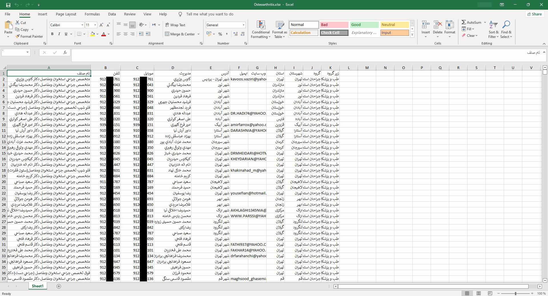 این فایل شامل اطلاعات کامل تمامی جراحان استخوان و مفاصل کشور از جمله شماره موبایل و تلفن ثابت، نام پزشک، آدرس، ایمیل، وبسایت، استان و شهرستان می باشد که از منابع اختصاصی Mobile BNK استخراج شده اند.
