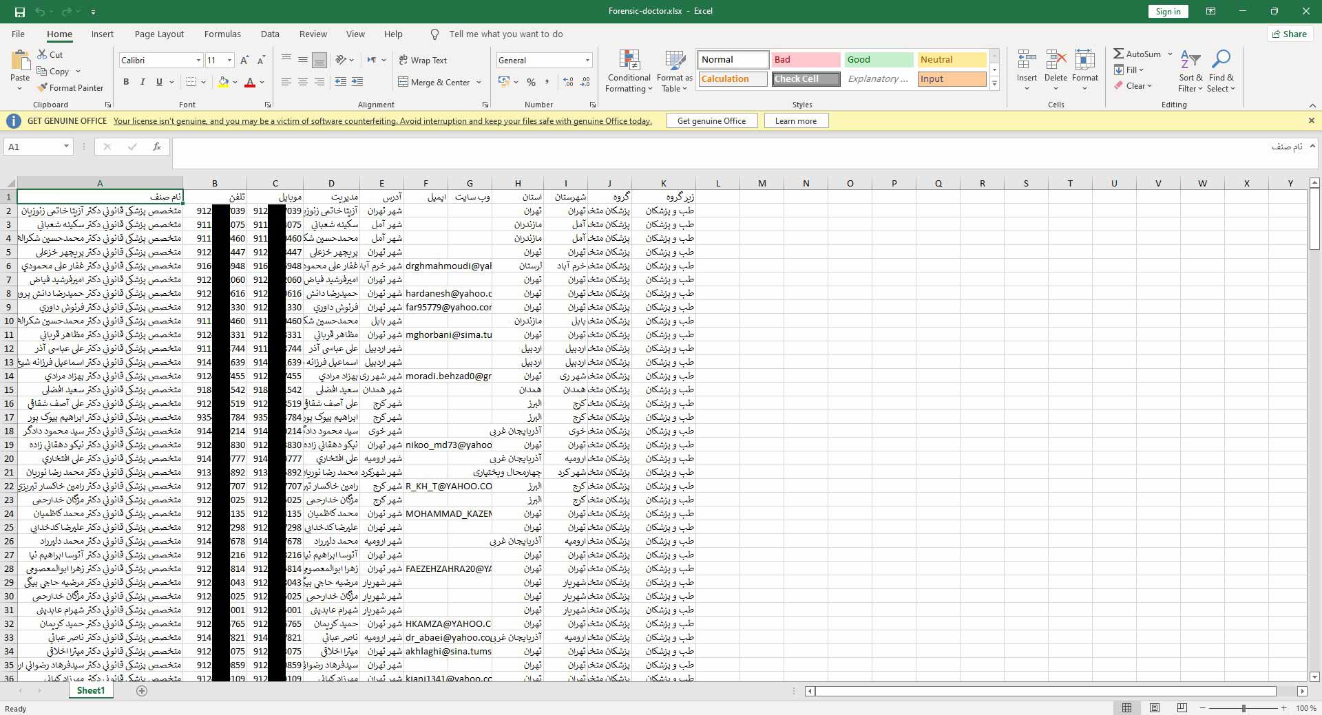 این فایل شامل اطلاعات کامل تمامی پزشک قانونی های کشور از جمله شماره موبایل و تلفن ثابت، نام پزشک، نام مدیریت، آدرس، ایمیل، وبسایت، استان و شهرستان می باشد که از منابع اختصاصی Mobile BNK استخراج شده اند.