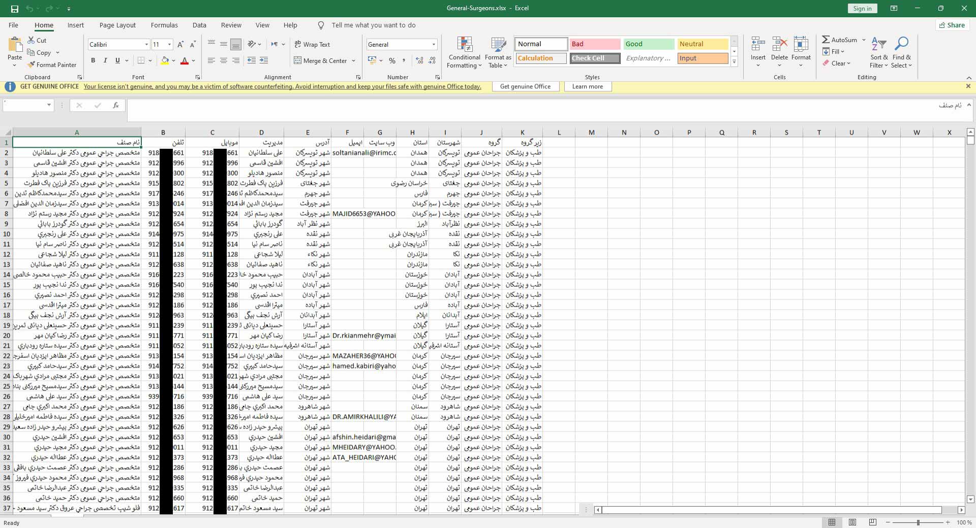 این فایل شامل اطلاعات کامل تمامی جراحان عمومی کشور از جمله شماره موبایل و تلفن ثابت، نام پزشک، آدرس، ایمیل، وبسایت، استان و شهرستان می باشد که از منابع اختصاصی Mobile BNK استخراج شده اند.