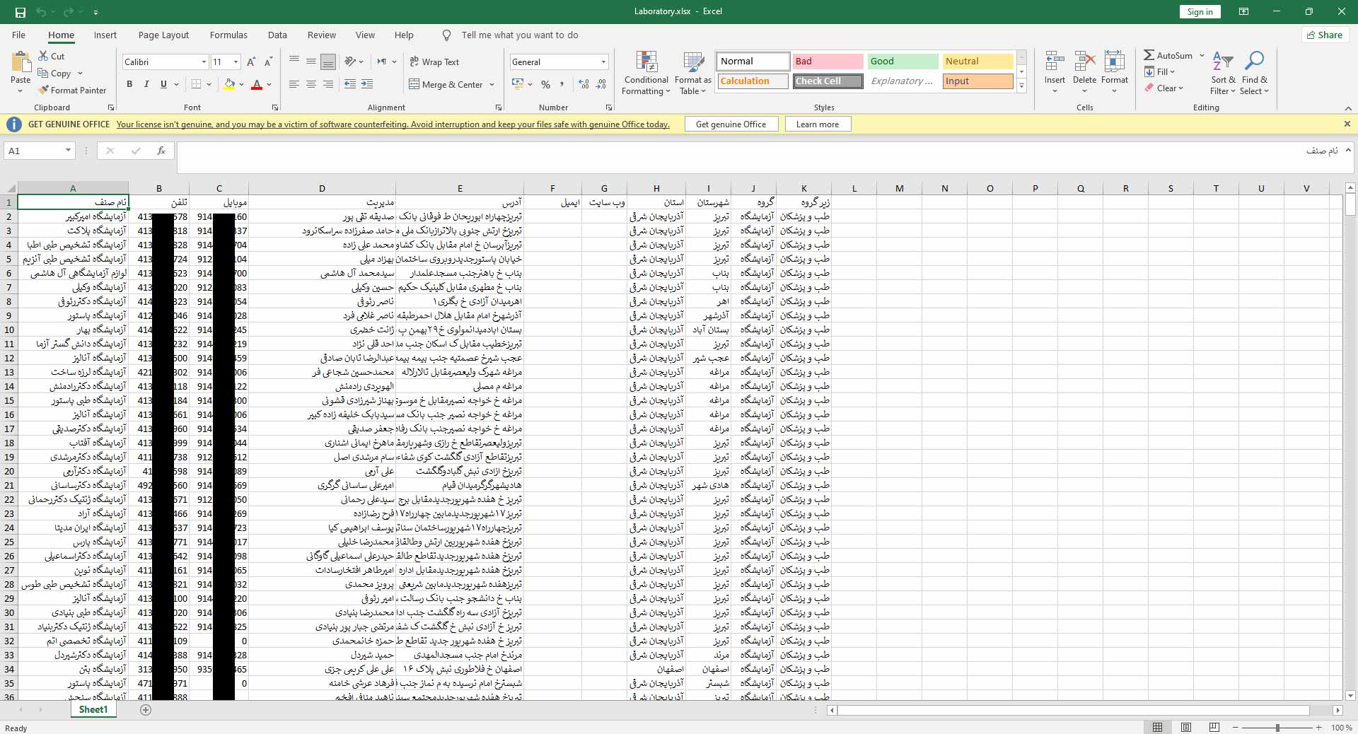 این فایل شامل اطلاعات کامل تمامی آزمایشگاه های کشور از جمله شماره موبایل و تلفن ثابت، نام آزمایشگاه، نام مدیریت، آدرس، ایمیل، وبسایت، استان و شهرستان می باشد که از منابع اختصاصی Mobile BNK استخراج شده اند.