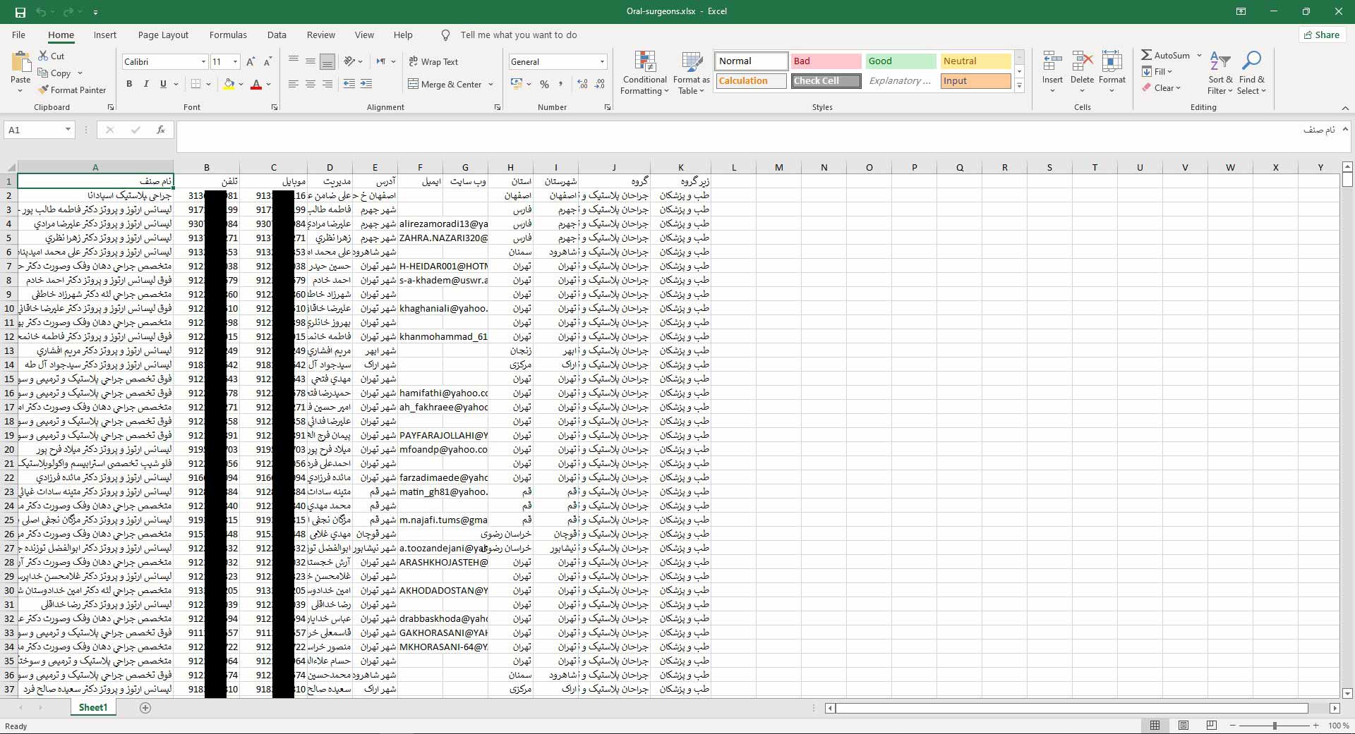 این فایل شامل اطلاعات کامل تمامی جراحان دهان و فک کشور از جمله شماره موبایل و تلفن ثابت، نام پزشک، آدرس، ایمیل، وبسایت، استان و شهرستان می باشد که از منابع اختصاصی Mobile BNK استخراج شده اند.