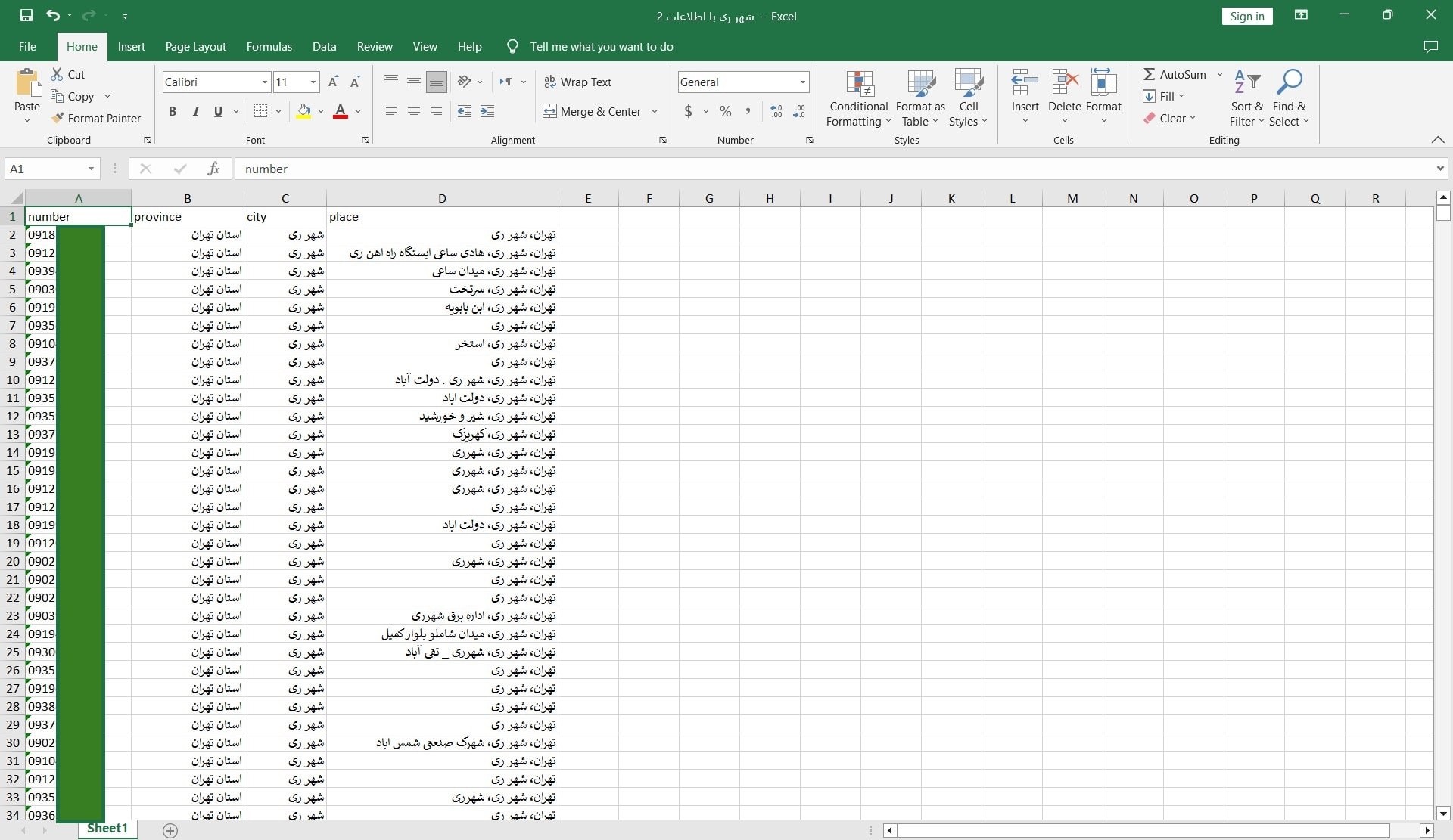 دانلود بانک شماره موبایل شهرستان ری همراه اول