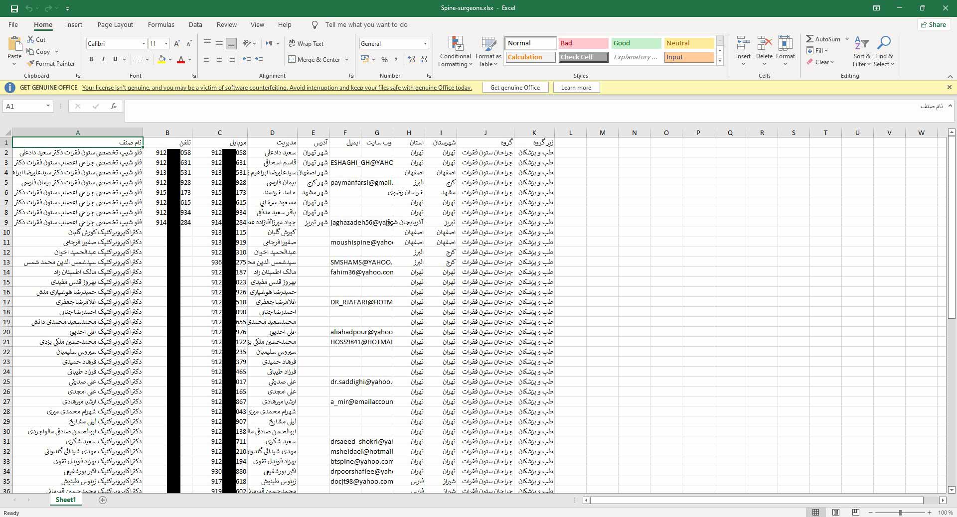 این فایل شامل اطلاعات کامل تمامی جراحان ستون فقرات کشور از جمله شماره موبایل و تلفن ثابت، نام پزشک، آدرس، ایمیل، وبسایت، استان و شهرستان می باشد که از منابع اختصاصی Mobile BNK استخراج شده اند.